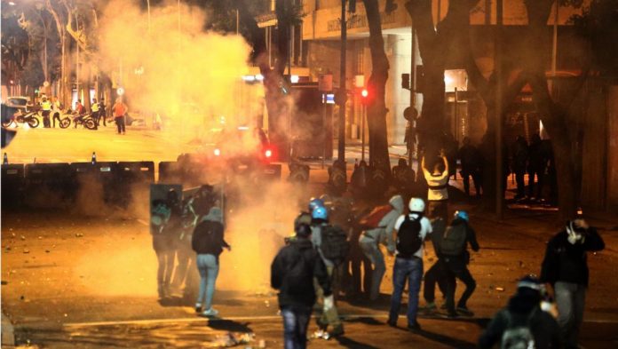 Mais cedo, manifestantes haviam ateado fogo em lixeiras ao longo da Avenida Mem de Sá, o que levou à interdição parcial do trânsito no local. Na Cinelândia, houve confronto. Pessoas mascaradas jogaram pedras e garrafas contra os policiais, que responderam com bombas de gás lacrimogêneo e de efeito moral. Também houve casos de vandalismo praticados por black blocs.