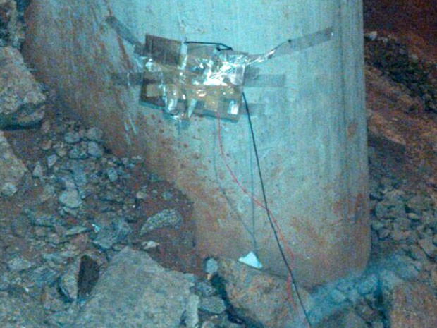 Duas bananas de dinamite foram encontradas pela políciaa presas com fita adesiva em uma das colunas da obra da linha 15-Prata do metrô paulistao erguidas na avenida Sapopemba, no Jardim Adutora.