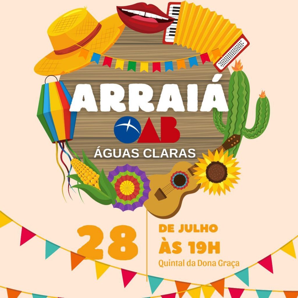 Já considerado o maior evento de festa junina (eventualmente, julina) do mundo jurídico que orbita na capital da República, o Arraiá de Águas Claras, promovido pela OAB local, já tem dia, hora e local confirmados: será na quinta-feira, 28, a partir das 19 horas, no Quintal da Dona Graça. Eric Gustavo, presidente da Ordem naquela R.A, garante que quem não aparecer, perderá uma festança. E, comenta-se, tem advogado preparando as cordas vocais para interpretar, no intervalo dos cantores profissionais, músicas que todo mundo faz coro. Como o repertório é vasto, não será surpresa ouvir Eduardo e Mônica, Faroeste Caboclo e, principalmente, Que País é Esse. Como se vê, será uma legião da turma do campo o Direito entoando sucessos urbanos.