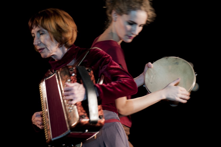 O acordeom e a voz estão lá desde o começo, nos anos 1970, garantidos por Janice Vieira, uma das pioneiras da dança contemporânea no Brasil. A partir de 2008, quando Andréia Nhur, sua filha, passou a formar com ela a dupla que deu continuidade ao grupo, o foco na relação som-movimento foi ganhando a centralidade na sua produção, até encontrar no contraponto barroco de Bach um estímulo para a sua estrutura coreográfica. Agora, uma canção existente se dobra sobre si mesma para se tornar um rastro que rasga para deixar sair a nostalgia que conforta e se mostrar como o que uma coleção de informações muito vasta balbucia.
