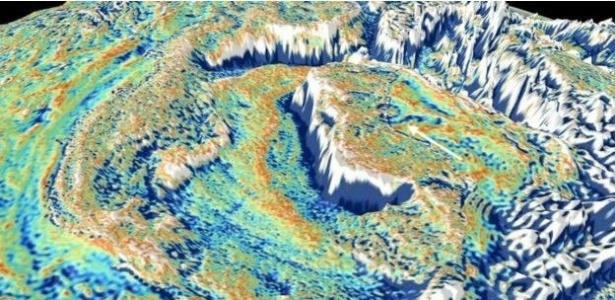 Sondagens da área abaixo do leito do oceano mostram que o anel lembra uma cadeia de montanhas em forma de arco.