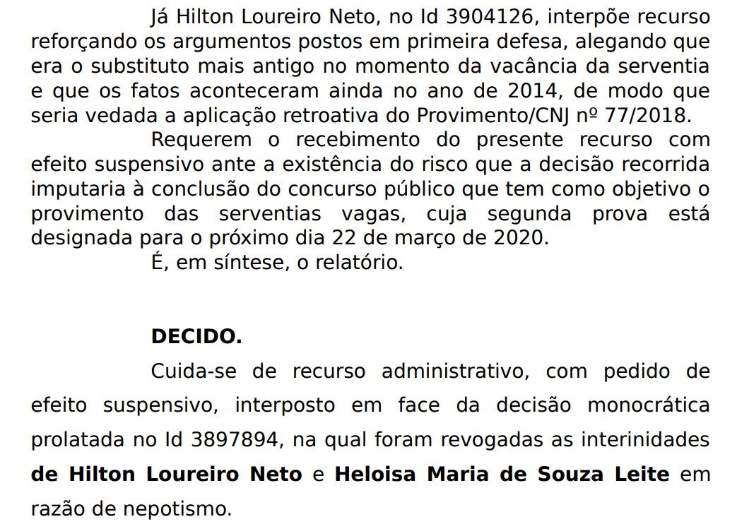 E isso não ocorre somente no TJ-AL. Da mesma forma vem acontecendo no procedimento de controle administrativo n.º 0003375-72.2019.2.00.0000, onde a ministra Maria Thereza Rocha Assis Moura mantém interina nomeada em situação de nepotismo póstumo.