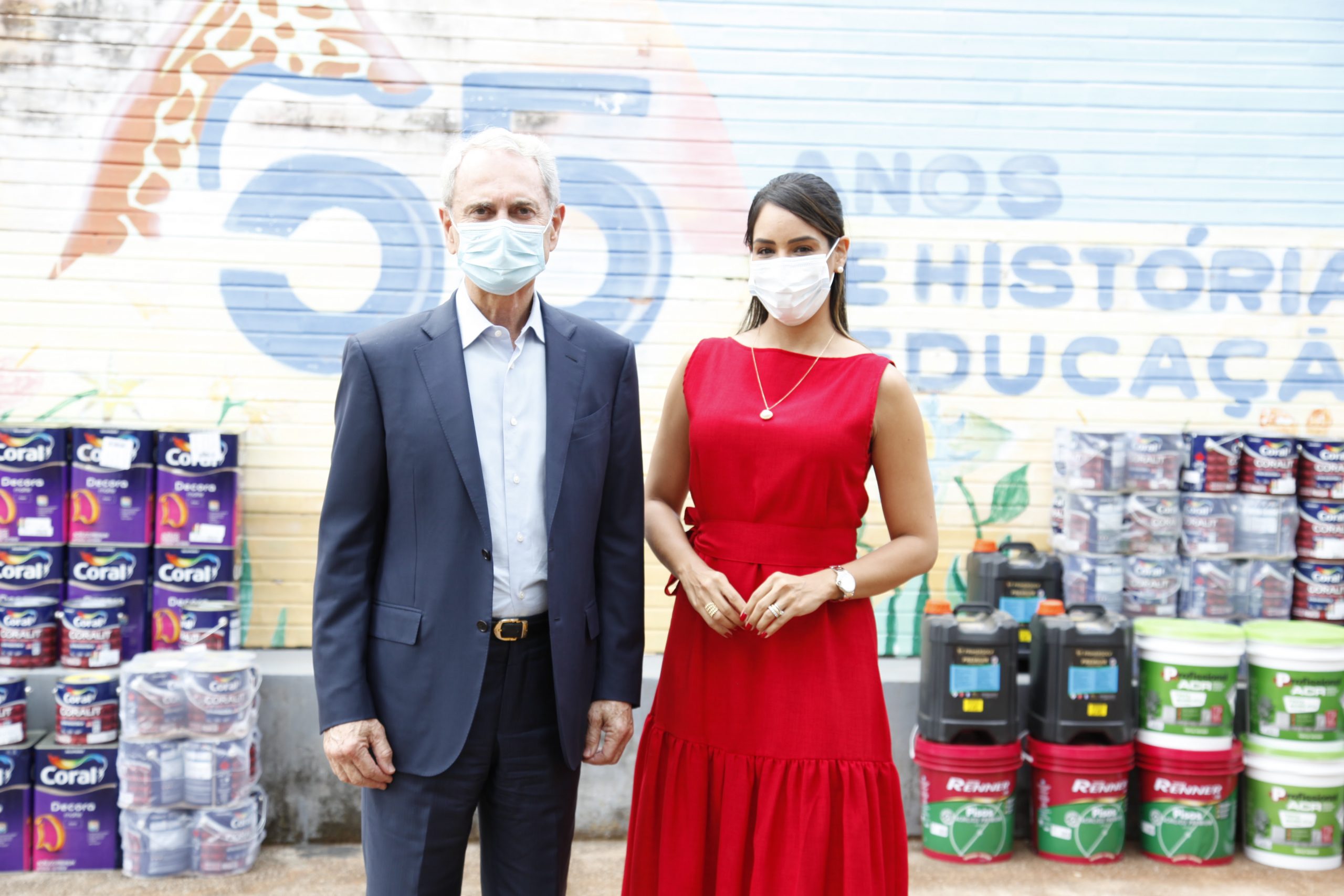Primeira instituição de ensino da nova capital, inaugurada em 16 de maio de 1960 pelo então presidente Juscelino Kubitschek, o Centro de Ensino Fundamental Caseb passa por uma reforma completa. E parte dela começa a ser custeada por ex-alunos. Localizada na 909/910 Sul, a unidade recebeu nesta quinta, 4, do empresário Paulo Octávio, ex-estudante do local, a doação de 1,2 mil litros de tintas para a pintura de gradis e da área externa da escola. A iniciativa integra o programa Adote uma Área Pública, realizado pela Secretaria de Projetos Especiais com o apoio da primeira-dama do DF, Mayara Noronha, também ex-aluna do Caseb.