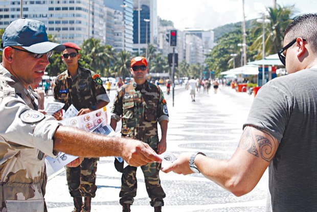 Militares fazem campanha de combate ao Aedes aegypti na Praia de Copacabana