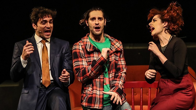 Também a banda de quatro músicos (comandada pelo diretor musical Jorge De Godoy) se integra ao cenário e, em cena, os três atores cantam 13 músicas com batida de rock e cuja precisa versão é assinada por Narchi e Machado.