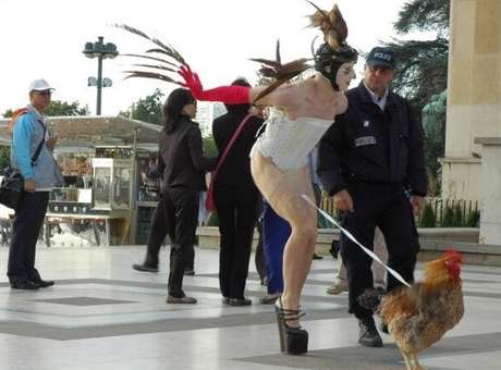 Um artista performático sul-africano que amarrou um galo vivo em seu pênis durante uma apresentação improvisada ao ar livre perto da Torre Eiffel, em Paris, foi considerado culpado de “exibicionismo sexual”, mas o tribunal local não estabeleceu uma sentença, disseram os promotores. Apesar de querer só aparecer, ele vai passar uns dias fechado em uma cela.