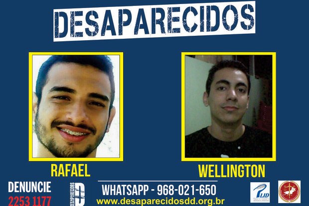 O Portal dos Desaparecidos lançou um cartaz, nesta quarta-feira, para pedir informações sobre dois estudantes que desapareceram. Aluno de Engenharia Mecânica da Universidade Federal do Rio de Janeiro (UFRJ), Rafael Fernandes da Silva, de 22 anos, foi visto pela última vez ao sair de casa na manhã desta quarta-feira. Já Wellington Araújo, também de 22 anos, do curso de Direito da Universidade Estadual do Rio de Janeiro (Uerj), saiu de casa nesta segunda-feira dizendo que ia à aula, mas os pais souberam que teria manifestação no local.