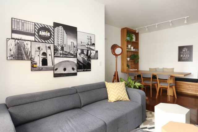 Fotos – Tem várias fotografias com um assunto central? Elas podem ficar bem dispostas em molduras simples dentro de uma composição regular e simétrica.