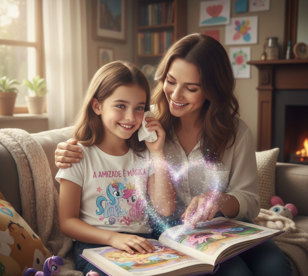 Depois de passar por diversas fases (Baby Shark, Galinha Pintadinha e outros) conheceu o fabuloso mundo de Equestria. Ficou de tal forma fascinada com as aventuras das personagens que, quando conversava com as pessoas (sim, ela adora conversar com todo mundo), sua frase favorita era o slogan da produção… “a amizade é mágica”. E até hoje ela usa essa frase em seu dia a dia…