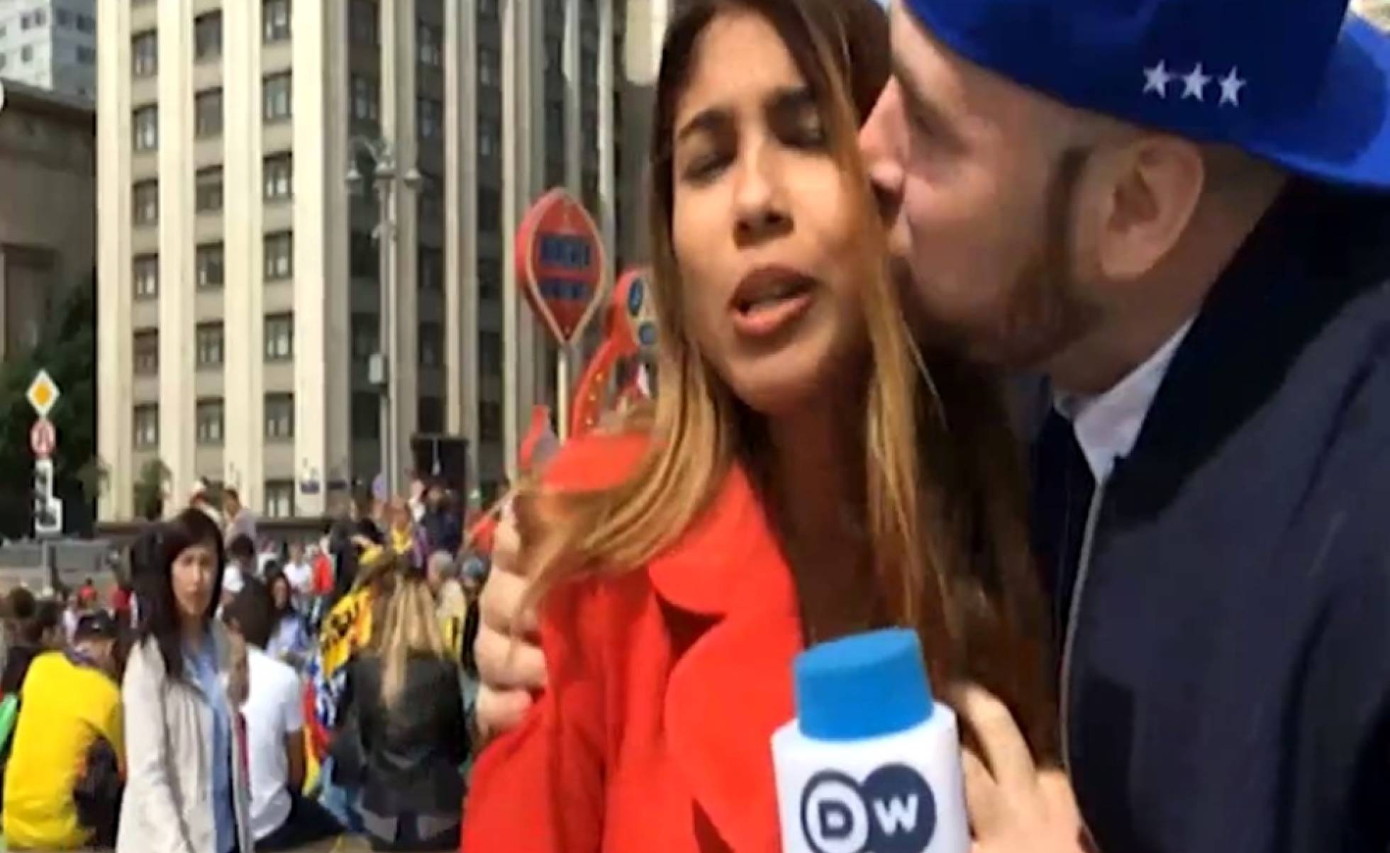 Antes mesmo do início da Copa, Julieth González Therán, enviada especial da Deutsche Welle a Moscou, foi agarrada à força e beijada no rosto por um homem de boné, na praça Manege, enquanto fazia uma transmissão sobre a contagem regressiva para a cerimônia de abertura. No estúdio, diante do constrangimento da repórter colombiana, a apresentadora Ana Plasencia desabafou, questionando as medidas de segurança tomadas pela Rússia para receber o Mundial: “Percebo que os torcedores tomam a liberdade de distribuir beijos sem pedir permissão”. Para poder terminar a transmissão, Therán teve de ser cercada por pessoas que presenciaram o assédio e a protegiam de novas investidas. Em seu perfil no Instagram, ela se pronunciou exigindo respeito. “Não merecemos esse tratamento. Somos igualmente competentes e profissionais. Compartilho a alegria do futebol, mas devemos identificar os limites entre afeto e assédio.”