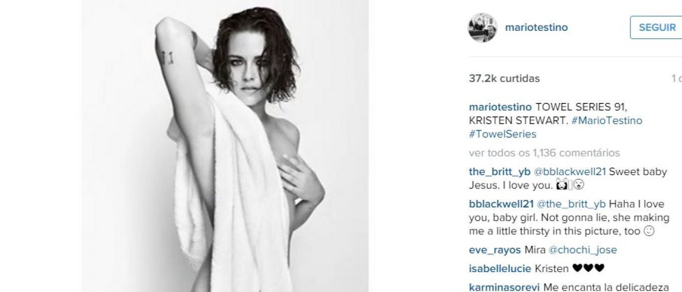 Esses traços exuberantes, cobertos parcialmente por uma toalha, são de Kristen Stewart, fotografada sem roupas para um ensaio em preto e branco. Ela é a Bella Swan, de Crepúsculo. Sobre a imagem, os fãs não deixaram de elogiar a”deusa, maravilhosa e perfeita”.