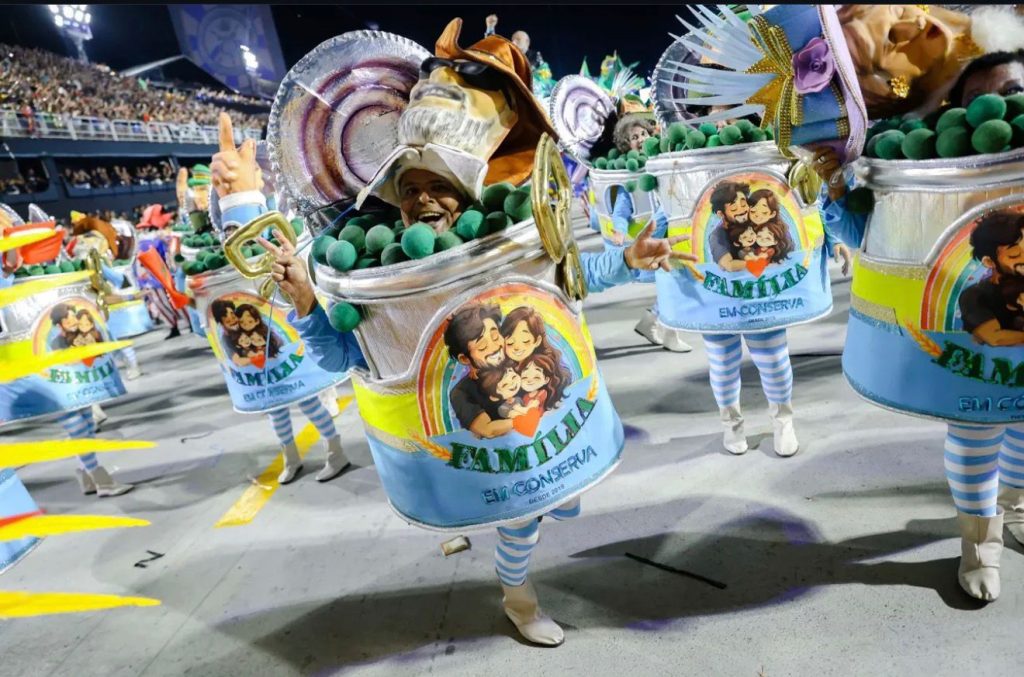 A provocação não foi gratuita. Foi cirúrgica. E como toda arte que toca em nervos expostos, gerou reação. Após o desfile, as redes sociais foram tomadas por imagens produzidas com inteligência artificial de famílias literalmente dentro de latas de conserva. Muitos acreditaram estar ironizando a escola. Mas, na prática, acabaram provando exatamente o ponto que a agremiação colocou em evidência: a dificuldade de lidar com a crítica quando ela atinge crenças identitárias.