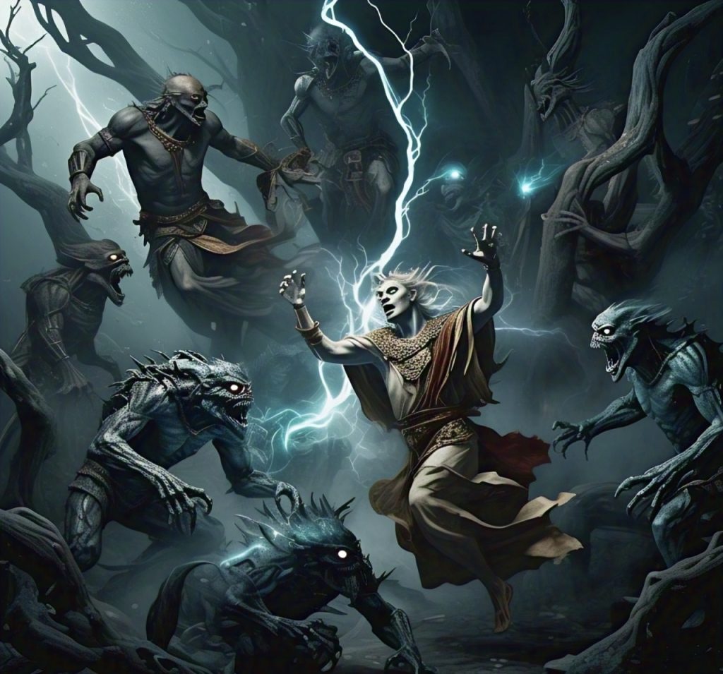 Dessa vez, porém, não recorreram a monstros e deuses, não adiantava muito; enfrentaram-se com armas humanas, sem recorrer a poderes sobrenaturais, até caírem por terra.
