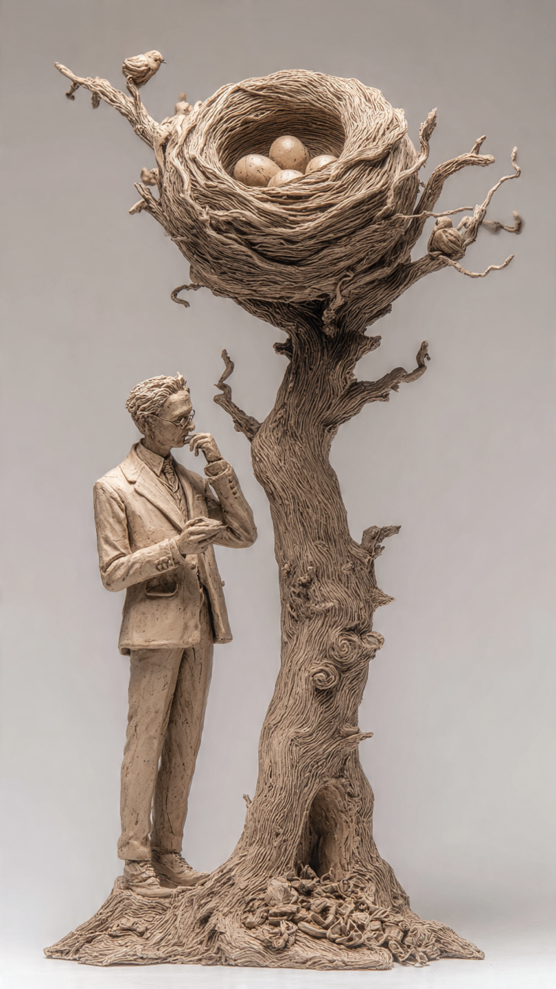 Por alguns minutos, Henrique esqueceu o próprio dilema e observou o operário emplumado. Logo percebeu um detalhe curioso: o volume de lama no bico era excessivo, desproporcional ao tamanho da ave. O João-De-Barro tentou alçar voo, mas só conseguiu um rasante desajeitado, quase colidindo com uma cerca viva. Tentou outras três vezes, sem sucesso, o peso o impedia de voar. Henrique concluiu que talvez fosse o primeiro ninho da afobada criatura, ainda ignorante de suas próprias limitações.