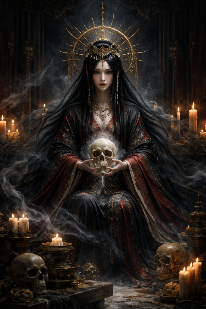 Na tradição lendária, Himiko não governava com exércitos, mas com rituais. Diz-se que falava com os espíritos, controlava os ciclos da vida e da morte e decidia o destino das colheitas e das guerras por meio de oráculos. Essa proximidade com o invisível fez nascer o mito mais sombrio; justamente o de que Himiko não era apenas uma mediadora dos mortos, mas sua mãe simbólica.