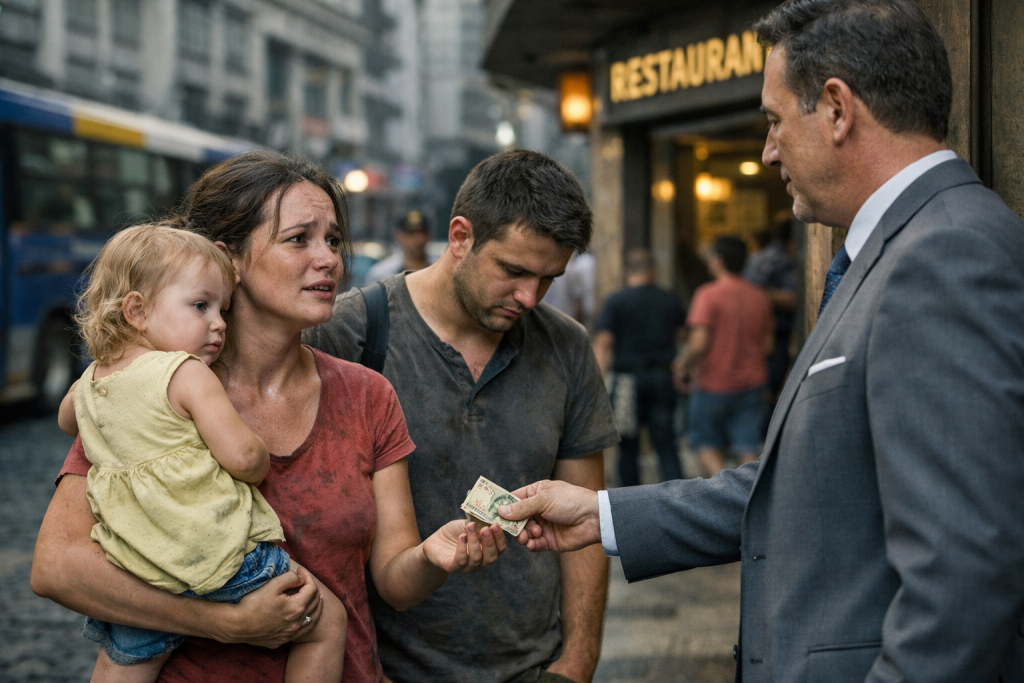 Qualquer um se compadeceria com a cena. Era uma mulher com as feições tristes, uma criança de não mais que dois anos no colo; o rapaz, ao lado, com um rosto envergonhado, como se estivesse se culpando por colocar a esposa naquela situação constrangedora. Mas é que tem horas que a necessidade aperta e a vergonha afrouxa. Assim abordavam um homem envergando um belo terno cinza na porta de um restaurante em pleno centro do Rio de Janeiro, quase no fim de tarde. Era um dia comum, começo de ano, o movimento por aquelas ruas andava pouco.