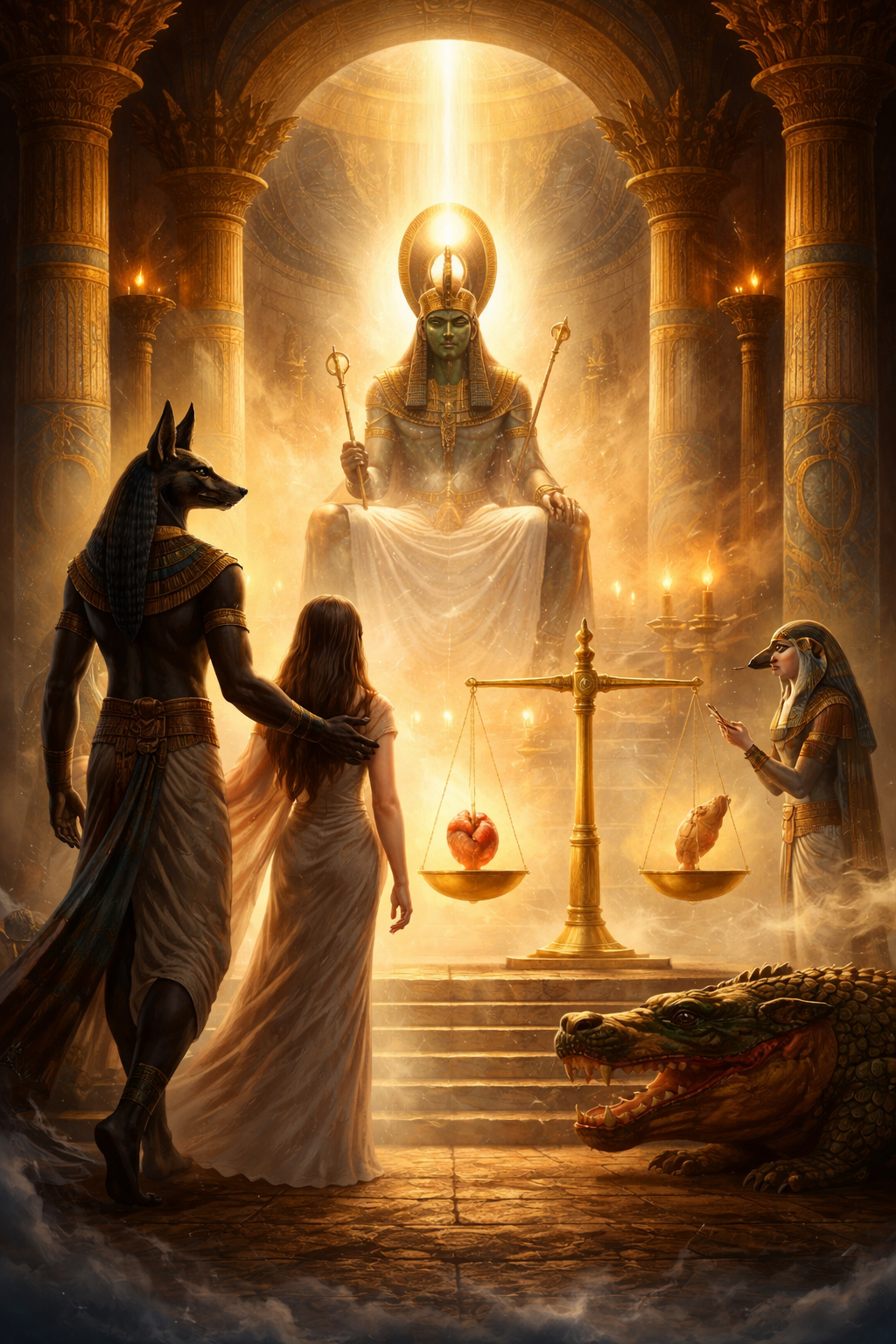 Presidindo o julgamento estava Osíris, o deus que morreu, foi esquartejado, ressuscitou e se tornou senhor do além. Ele personificava a promessa suprema: a morte não anula a vida; ela a transforma.