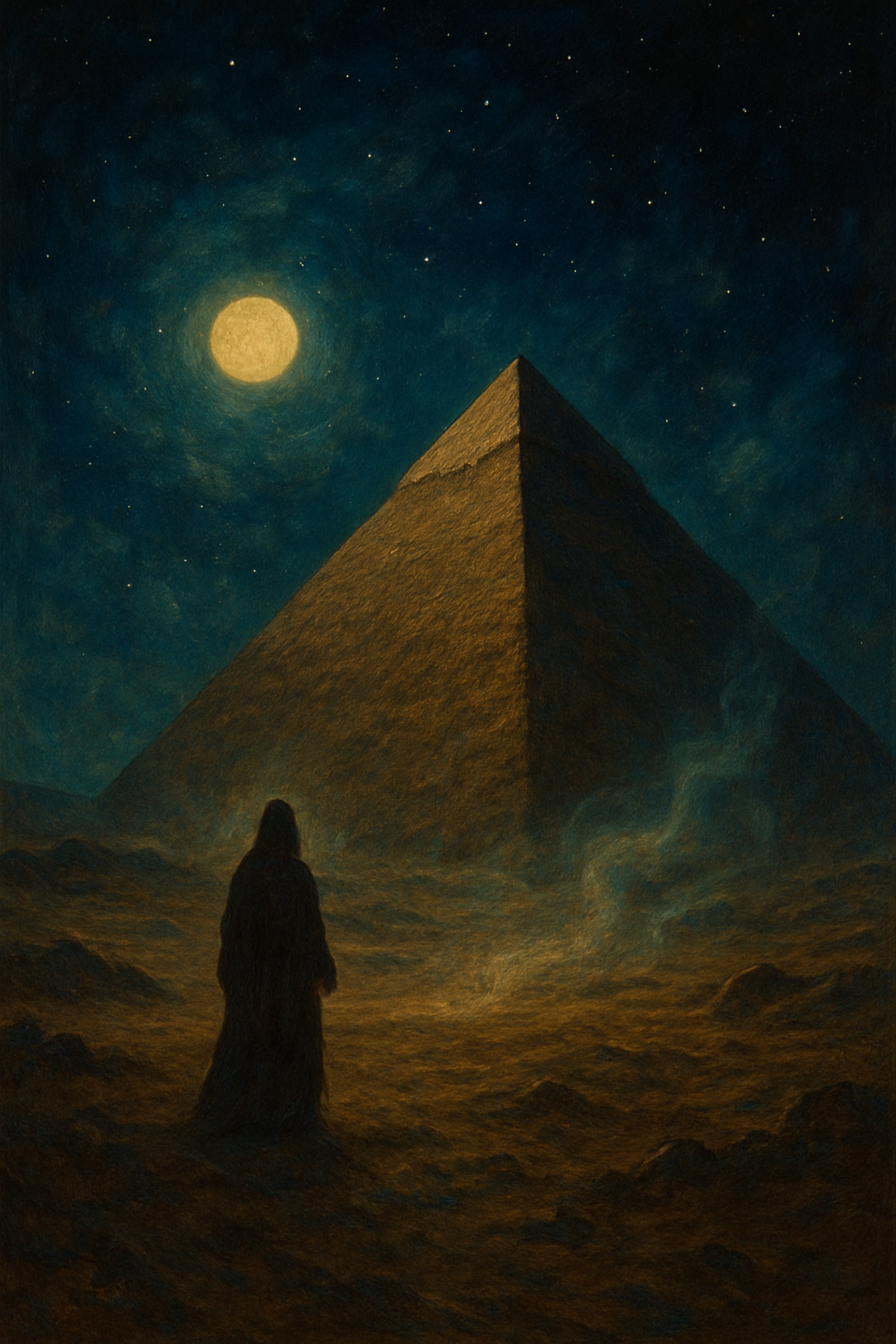 Conta-se que, nas noites em que a lua se ergue sobre o deserto como uma lâmpada ancestral, é possível ouvir ecos vindos do coração da pirâmide. Sons graves, como se a pedra respirasse. Os mais sensíveis dizem que é a voz de Khufu, o faraó, chamando seus filhos perdidos ao caminho da eternidade.