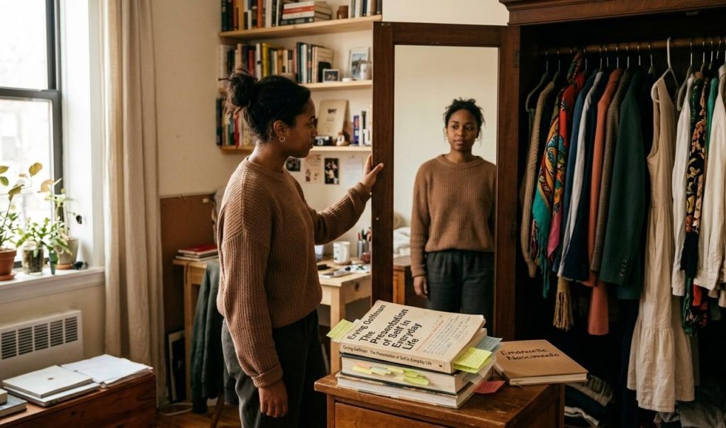 Goffman pensava a vida social como uma encenação. Nesse sentido, a roupa é parte do que apresentamos ao mundo uma linguagem silenciosa que diz quem somos, ou quem queremos ser naquele dia.