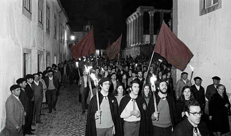 Mas havia momentos em que a revolução se impunha, além das falas. Permanece indelével a lembrança de uma passeata noturna pelas ruas de Évora. Não lembro o motivo da manifestação. Lembro-me das bandeiras vermelhas, das tochas acesas que iluminavam o branco das casas, da multidão serpenteando pelas ruas estreitas, do luar – tudo isso compôs uma cena de extraordinária beleza.
