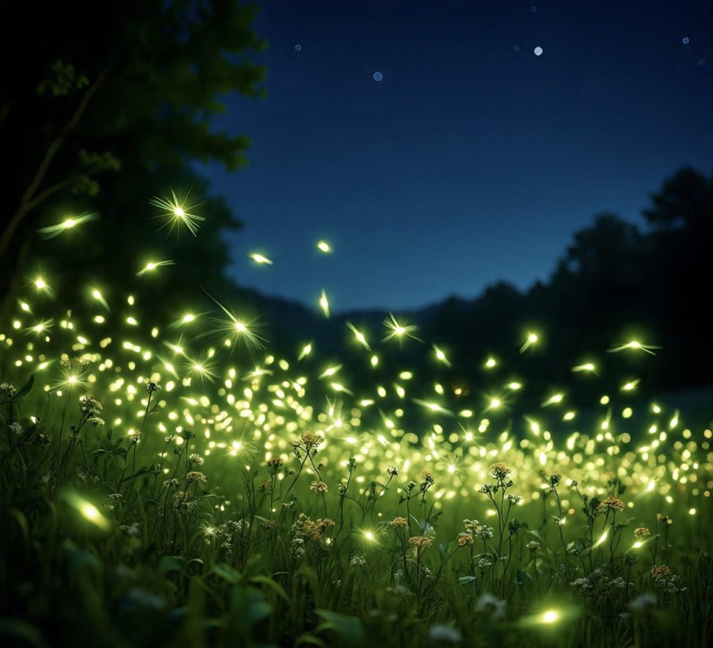O criador nos presentou com pequenas estrelas na terra, elas se movem e piscam tornando as noites escuras uma festa.