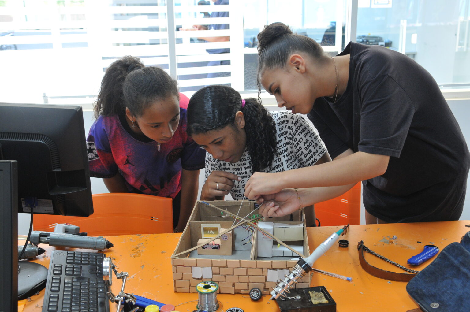 Nas aulas, a gurizada aprende a desenvolver placas fotovoltaicas, trabalhar na automação de casas, construir robôs em impressoras 3D, pilotar drones, além de técnicas para se tornarem web designers.