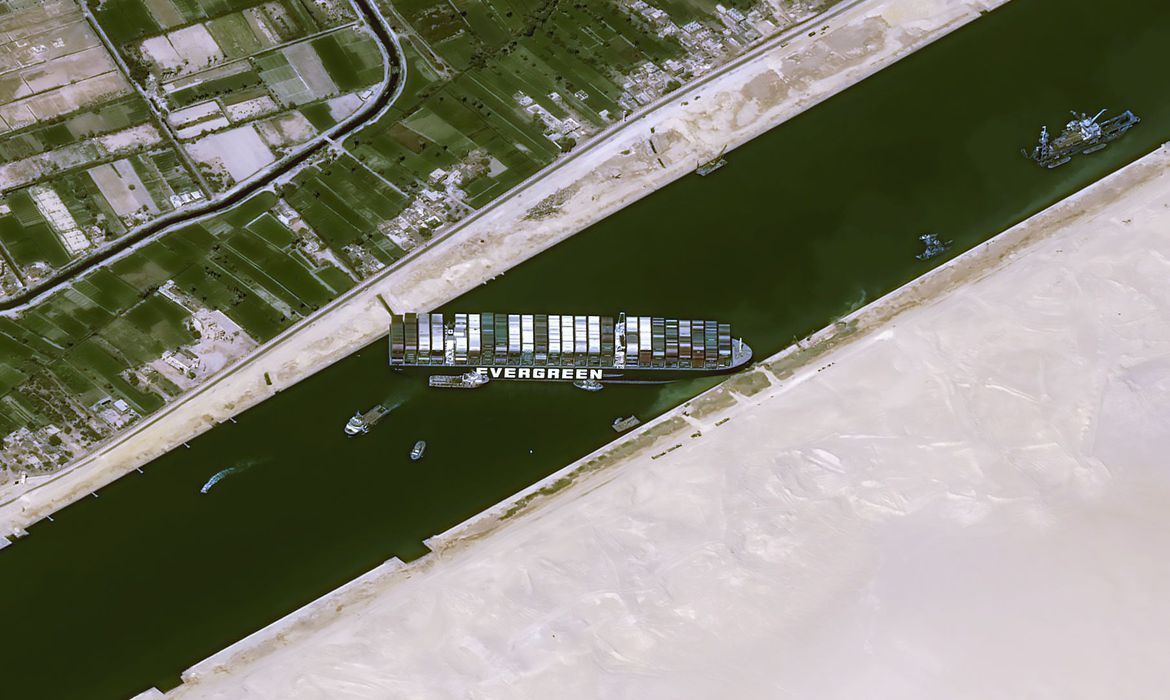 O Ever Given, de propriedade japonesa, ficou preso entre ventos fortes e permaneceu ao longo do canal por seis dias, interrompendo o comércio global.