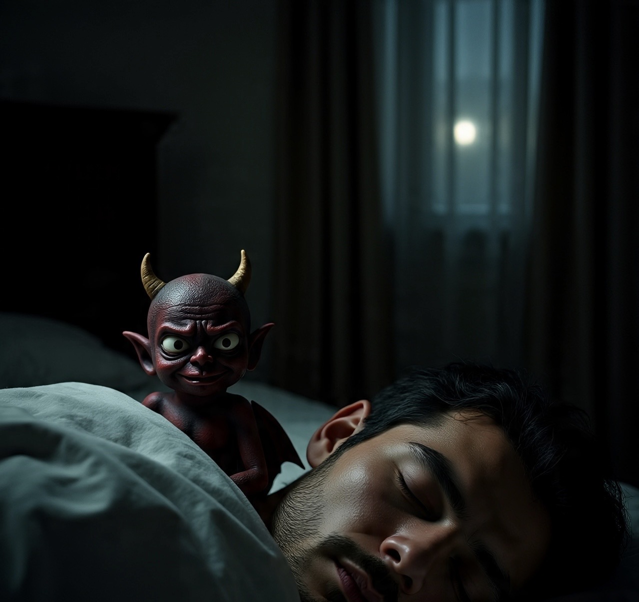 Acordou assustado e se perguntou quem o estaria arranhando e falando aquilo. Acendeu a luz e viu um ser pequenino, de uns 10 centímetros de altura (incluídos os chifres), que rosnou baixinho para ele e depois sorriu, meio sem graça. Luciano sorriu de volta e falou a si mesmo: