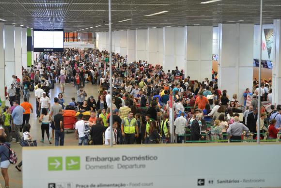 Às 9h, eles ocuparam o saguão do aeroporto. Com isso, boa parte do serviço de check in foi fechada e, segundo o SNA, não há até o momento previsão para a retomada desses serviços.