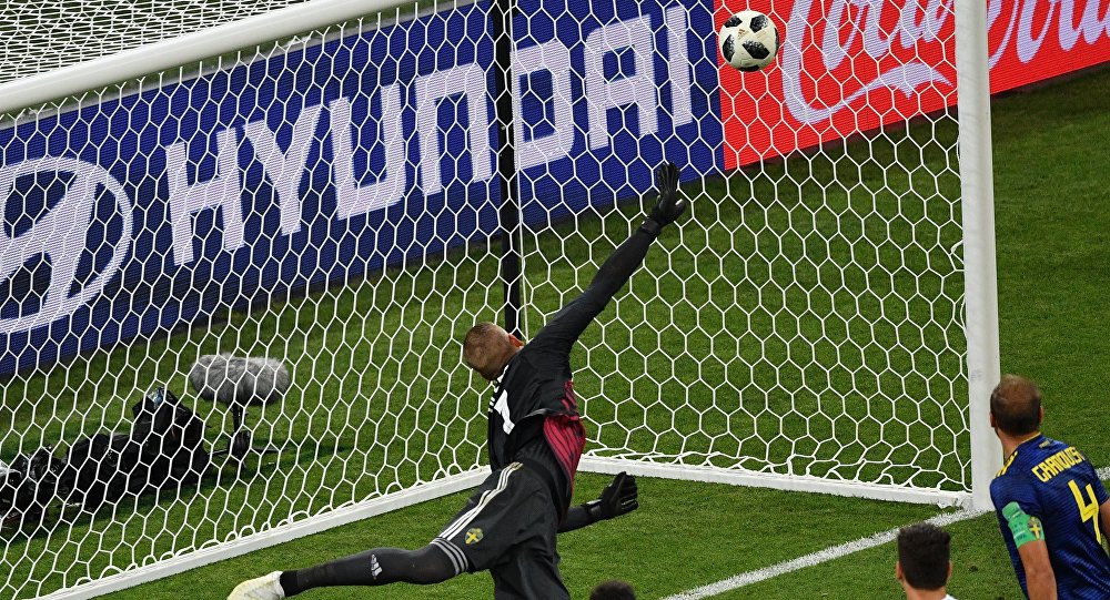Confiante e acostumada a derrotar favoritos, como fez nas Eliminatórias diante de Holanda e Itália, a Suécia começou a avançar e trocar passes. Aos 31 minutos, o gol saiu em uma bonita jogada. O regular Toni Kroos, cérebro da Alemanha, errou o passe, os suecos tabelaram e o atacante Toivonen, de 1,92 metro, teve a sensibilidade de tocar por cobertura para enganar o goleiro Neuer.