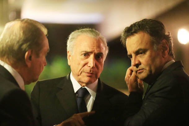 Os presidentes do PSDB, senador Aécio Neves (MG), e do DEM, senador Agripino Maia (RN), fizeram chegar ao Palácio do Planalto a mensagem de que é necessário que o governo do presidente em exercício, Michel Temer, “enquadre” o PMDB para evitar “ambiguidade” nas ações da base aliada do Congresso. A maior queixa dos dois é que suas legendas não aceitam assumir sozinhas o desgaste político de serem contra, por exemplo, a concessão de reajustes para o funcionalismo público, enquanto parlamentares do PMDB apoiam essas medidas.