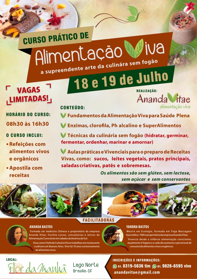 Espaço Flor da Manhã, Lago Norte, Brasília – DF.Principais alimentos vivos que serão preparados na prática durante o curso*: