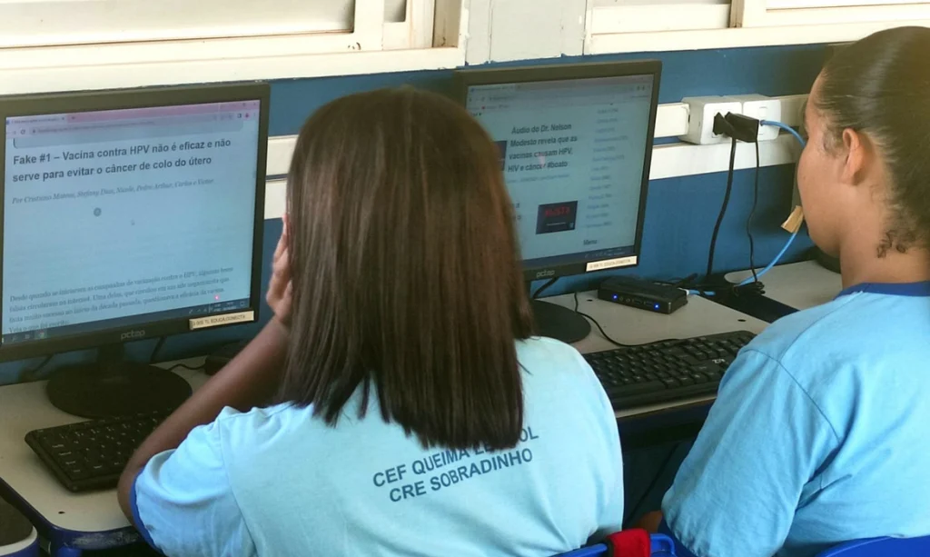 Alunos do Centro de Ensino Fundamental Queima Lençol, em uma área rural de Sobradinho, aprenderam como identificar se uma informação que recebem pelas redes sociais, chats de conversa é verdadeira ou não.