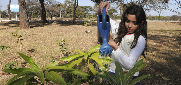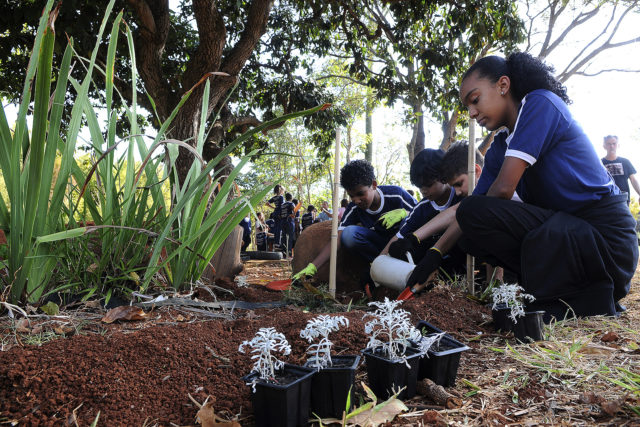Lá, além de plantar com os colegas, a menina aprende sobre a importância de preservar os recursos hídricos, a dar a destinação correta aos resíduos e sobre a biodiversidade do Cerrado, bioma que abrange todo o Distrito Federal.