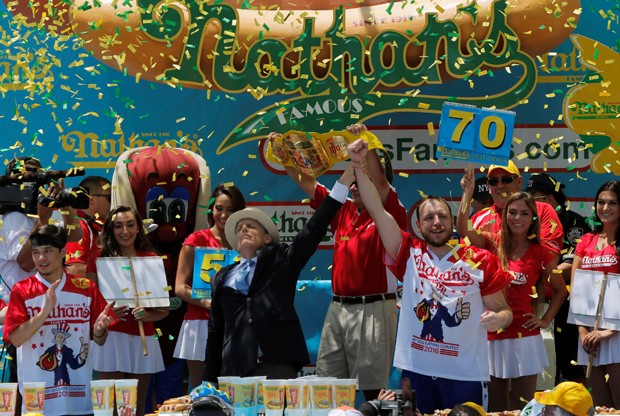 O americano Joey Chestnut, de 32 anos, obteve nesta segunda-feira (4) uma nova vitória na tradicional competição organizada pela rede de fast-food Nathan’s ao devorar 70 cachorros-quentes em apenas dez minutos.