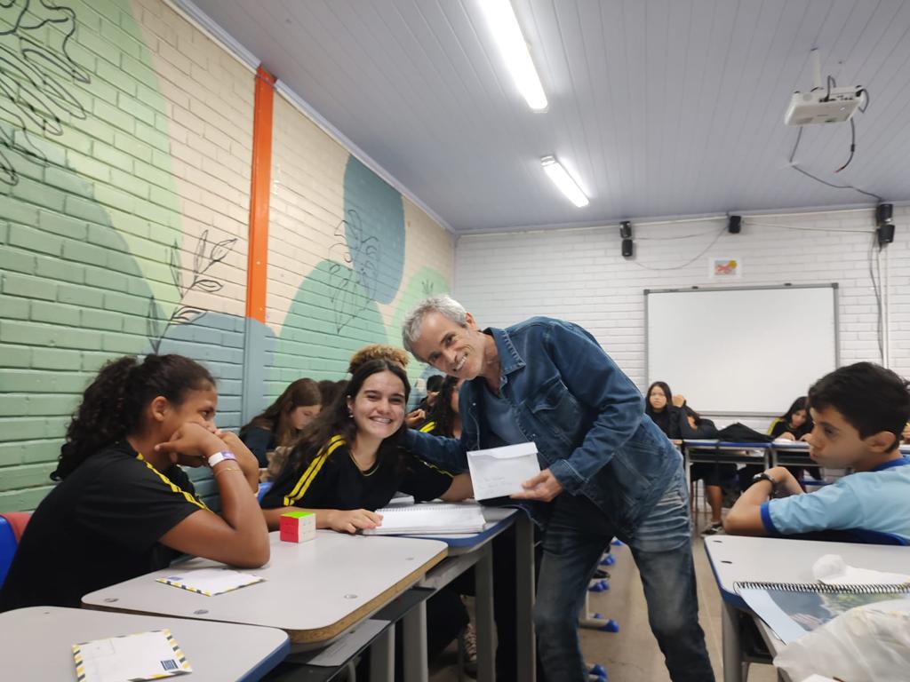 Durante o bate-papo com a turma, a Ana Clara me entregou uma carta, onde diz que estava muito ansiosa para me conhecer, que amou muito todos os meus textos lidos e trabalhados em sala de aula. Mas o melhor ainda estava por vir.