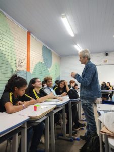 Lá estava entretido com aquelas meninas e meninos maravilhosos, quando o professor Leandro sugeriu uma atividade para aquele momento. Os alunos teriam que refazer o final de um dos meus textos. Fiquei muito curioso para ver o que aquela garotada iria aprontar.