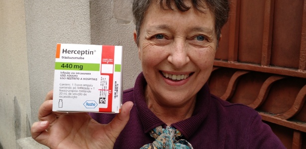 Nesta sexta-feira (4), depois de cinco meses de espera, a aposentada Elfriede Bleidorn, 60, moradora de Cotia, na Grande São Paulo, conseguiu receber o medicamento Herceptin (Trastuzunab). O câncer de Elfriede já está em estado avançado (em metástase), e por isso houve uma demora para a liberação do medicamento, cujo preço da aplicação varia entre R$ 9.000 e R$ 39.000, dependendo da dosagem de que o paciente precisa.