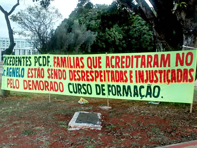 Candidatos que obtiveram a nota mínima de aprovação para um concurso da Polícia Civil do Distrito Federal, mas que excederam o limite de vagas disponíveis do processo seletivo, fizeram um protesto nesta segunda-feira (28). Eles instalaram faixas criticando o governo do DF e pedindo a convocação para o curso de formação de policiais. As informações são do G1.