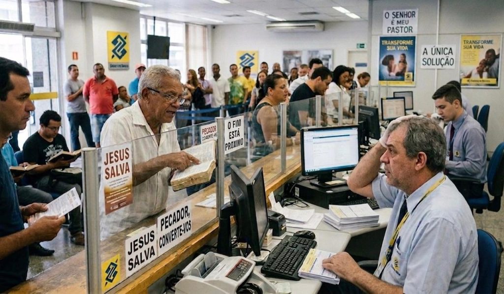Caixa do Banco do Brasil, mal entrava, o desejo de ir embora se instalava desconfortavelmente ao seu lado. Muitas contas para pagar, não dava para largar o emprego. Talvez fingir-se de louco. Não. Ninguém acreditaria.