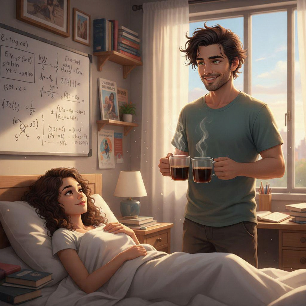 Os dois foram aprovados com louvor, o que levou a uma comemoração regada a espumantes. Apagaram bem pra lá de Bagdá e, no dia seguinte, o sujeito foi o primeiro a despertar. Ele preparou duas xícaras de café bem forte.