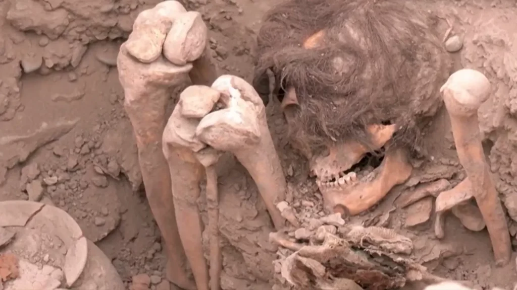 As quatro múmias infantis, descobertas ao lado de um adulto, foram cuidadosamente enterradas no que se acredita ter sido um espaço cerimonial sagrado, escondido sob a fachada moderna de um dos bairros mais antigos de Lima.