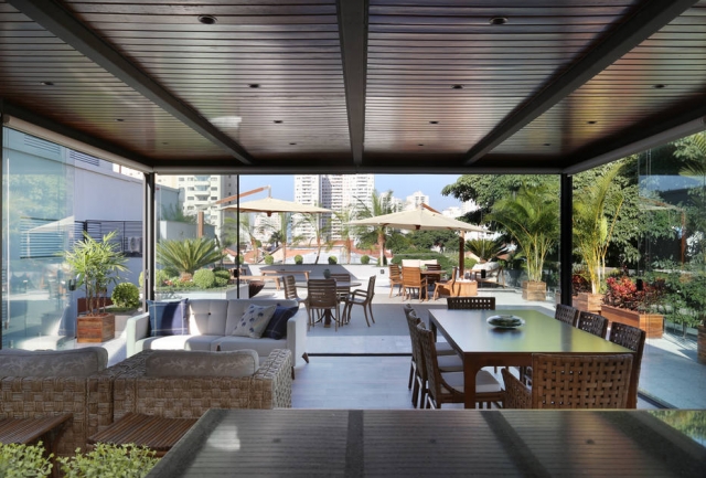 Por fim, para bem receber os familiares e amigos, outra das exigências do proprietário, a sala de jantar que antes comportava 8 pessoas foi reformada para ter capacidade de receber até 20 convivas. A cozinha foi integrada à sala e todas as janelas foram expandidas, tornando o ambiente ainda mais agradável. Questões de acessibilidade foram trabalhadas, tendo em vista parentes idosos e crianças.