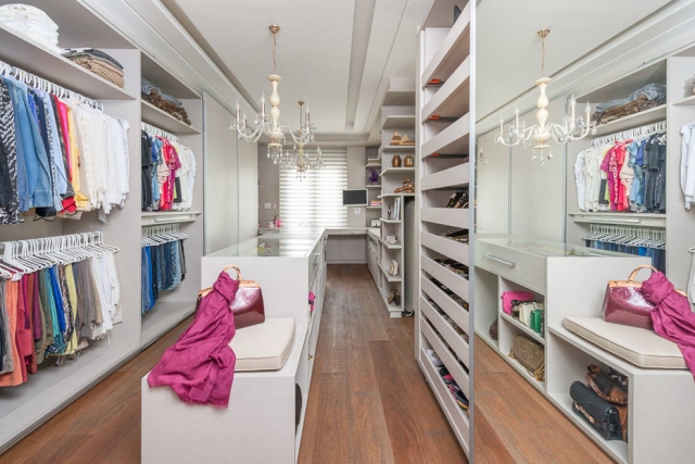 E engana-se quem pensa que closet só é possível em residências com grandes plantas. Em ambientes a partir de 1,2 m x 1,3 m já é possível sonhar. “Não existe uma medida mínima ou máxima, mas podemos considerar que é necessário dispor de uma área de circulação entre 70 a 80 cm, possibilitando que a pessoa caminhe de uma forma confortável. Para o armário, a profundidade deve ser de, no mínimo, 60 cm”, conta a também arquiteta Claudia Krakowiak Bitran.