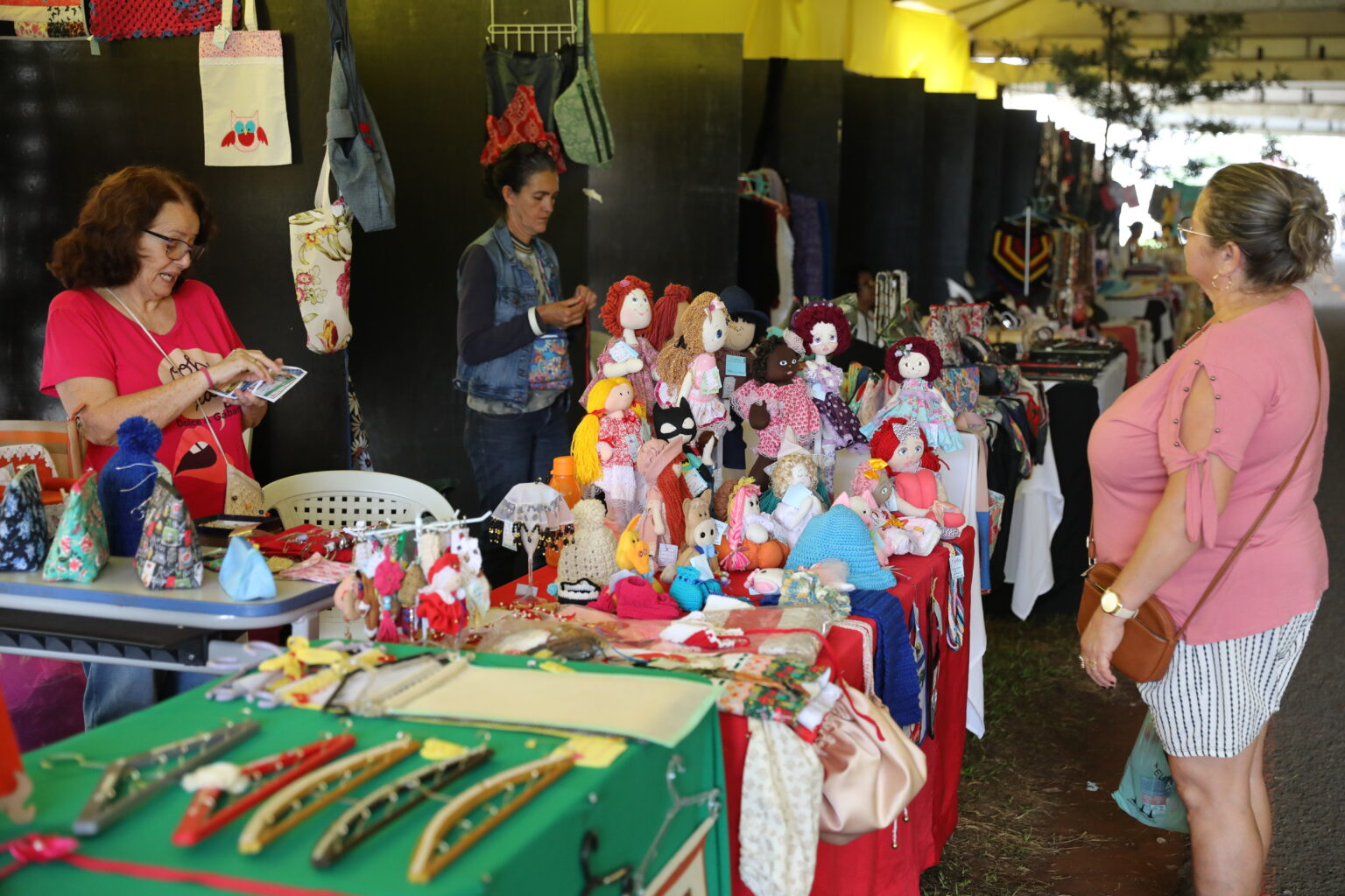 Artesã desde os 9 anos de idade, Maria Ilda Santos comemora a oportunidade de mostrar seu trabalho para o público. “Eu trabalho em casa mesmo; então, é valioso para mim poder expor meus produtos em uma feira, sem custos”, comemora. “Já recebi várias encomendas de almofadas, além de ter vendido toalhinhas e bonecas. O movimento tem surpreendido”.