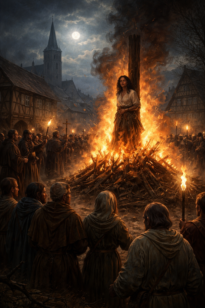 Havia noites na Europa medieval em que o vento parecia soprar mais pesado. Não era apenas o frio. Era o medo. As aldeias dormiam cedo, mas nem todos fechavam os olhos. Sempre havia alguém desconfiando do vizinho, da parteira, da viúva que falava sozinha enquanto colhia ervas ao entardecer. Em tempos de peste, fome e guerra, qualquer diferença podia ganhar o nome de ameaça. E ameaça, naquele mundo governado por cruzes e sinos, era coisa séria.
