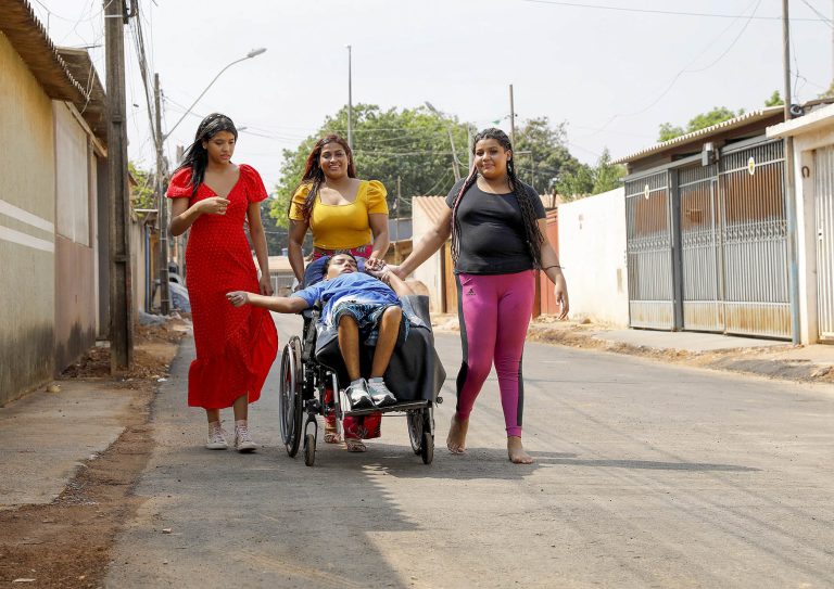 Residente da Chácara 142 A, a vigilante de 41 anos, ao ver a rua onde mora com a família pavimentada, não conteve a emoção e registrou em vídeo a felicidade de quem, pela primeira vez, pôde empurrar sem dificuldades a cadeira de rodas que o jovem usa diariamente para se locomover e acessar serviços básicos, como saúde e educação.