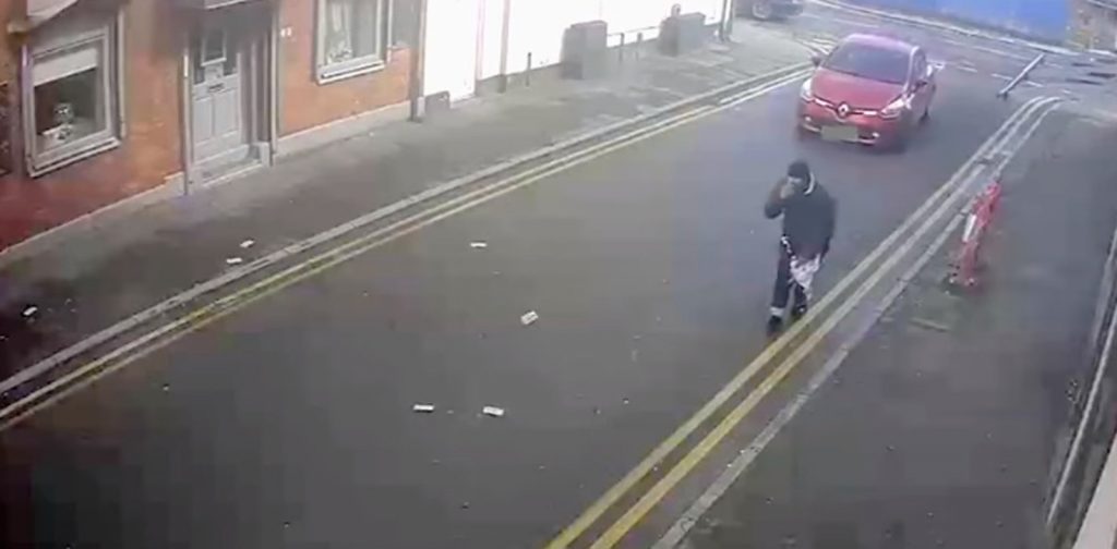 A polícia da Grande Manchester postou o vídeo, que mostra os suspeitos andando por uma rua após assaltar uma agência de viagem em Droylsden em 17 de março.