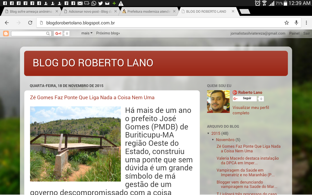 O blogueiro Orislandio Timóteo Araújo, mais conhecido como Roberto Lano, foi assassinado no sábado, 21, em Buriticupu (MA), a 395 km de São Luís. Um motoqueiro efetuou um disparo na cabeça da vítima.