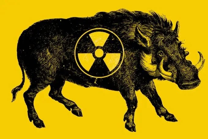 ATENÇÃO MORADORES… PERIGO: ELES ESTÃO POR TODA PARTE… NÃO PROVOQUE… CUIDADO… ATENÇÃO… OS JAVALIS RADIOATIVOS ESTÃO SOLTOS… PERIGO…. PERIGO… FIQUE EM CASA!